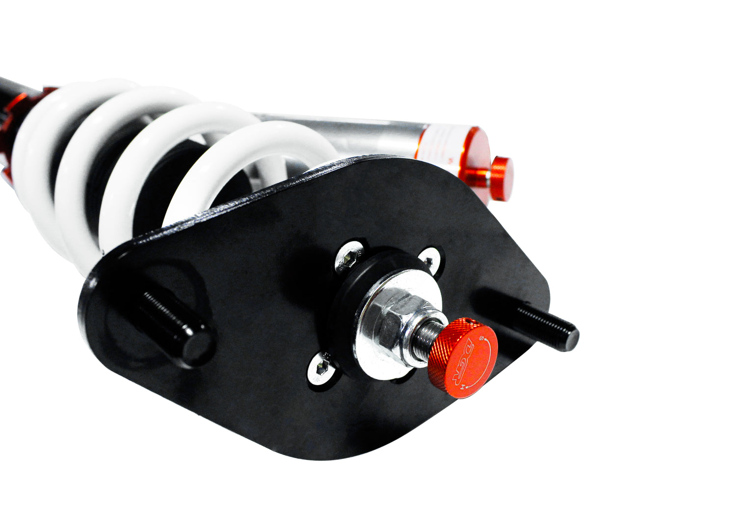 DGR coilovers offer excellent, versatile performance , durability and ride comfort over all road conditions. Featuring 30 levels of damping adjustment, it combines both rebound and compression in one adjust for simplicity and ease of use. The damper can be easily accessed and adjusted via a knob at the top of the damper mount. Simple adjustments can be made to tune to your desired style of driving and comfort level that you desire. This allows you to preset to soft damping for your daily drive and switch to hard damping for track days
