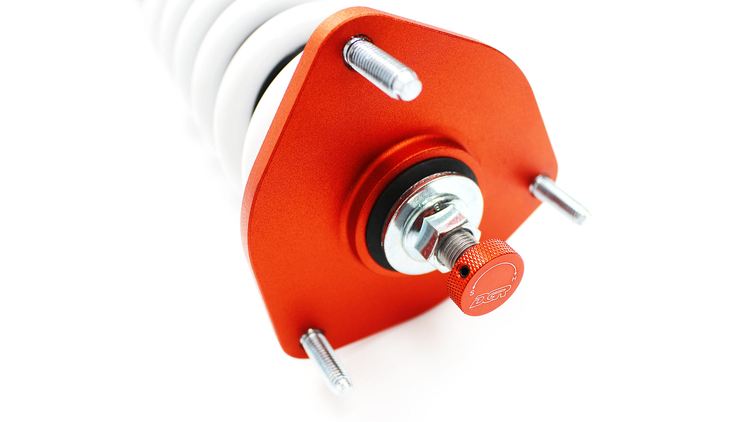DGR coilovers offer excellent, versatile performance , durability and ride comfort over all road conditions. Featuring 30 levels of damping adjustment, it combines both rebound and compression in one adjust for simplicity and ease of use. The damper can be easily accessed and adjusted via a knob at the top of the damper mount. Simple adjustments can be made to tune to your desired style of driving and comfort level that you desire. This allows you to preset to soft damping for your daily drive and switch to hard damping for track days