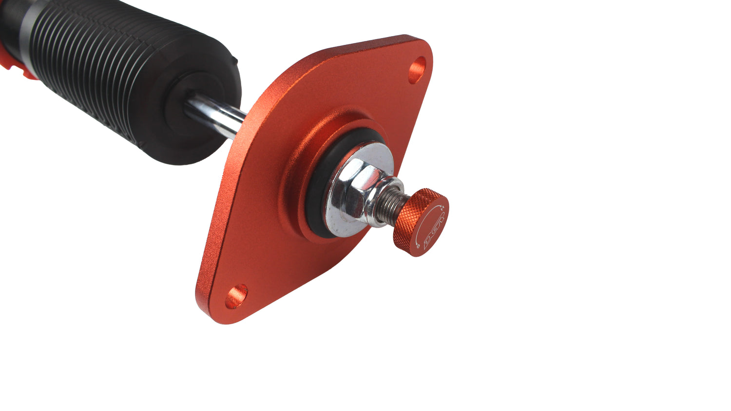 DGR coilovers offer excellent, versatile performance , durability and ride comfort over all road conditions. Featuring 30 levels of damping adjustment, it combines both rebound and compression in one adjust for simplicity and ease of use. The damper can be easily accessed and adjusted via a knob at the top of the damper mount. Simple adjustments can be made to tune to your desired style of driving and comfort level that you desire. This allows you to preset to soft damping for your daily drive and switch to hard damping for track days