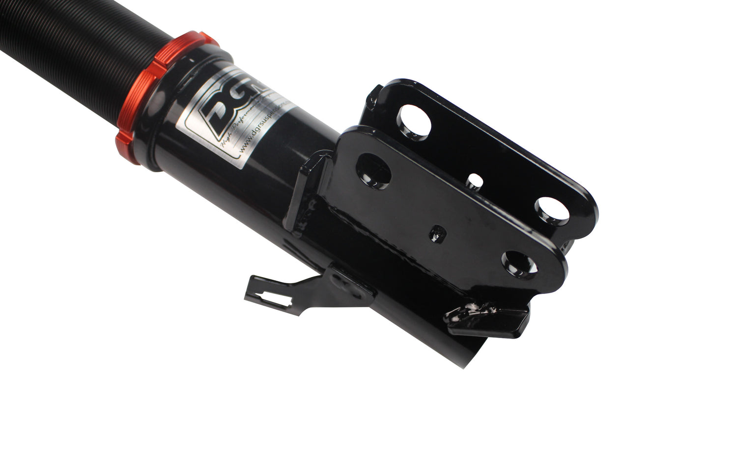 DGR uses a threaded tube body coupled with an adjustable lower mount, offering an independent height adjustment . This means a wide range of height adjustment is available without affecting the spring per-load or the damper stroke length. This allows significant ride height changes without sacrificing shock travel or ride comfort. So whatever height is being set, you will received to optimum performance of the damper. You can raise your car up to factory height for OEM appearance. Otherwise, you can drop your car all the way down for a formal racetrack aggressive outlook which also lowers your centre of gravity. Not to mention, by lowering the centre of gravity from OEM height you dramatically improve the vehicle’s performance and handling characteristics.